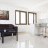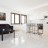 - A living room with sofa couch, high chairs, flat screen TV & air conditioning