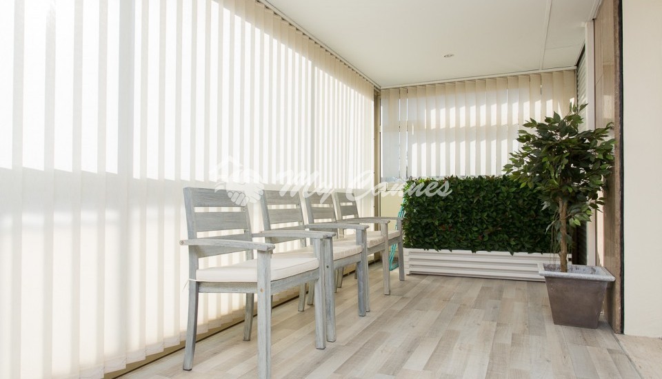 Located 300 meters from la Croisette, on the 1st floor, this 2 bedrooms apartment with veranda offers a moden style.