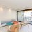 A 2nd ensuite bedroom with 2 single beds that can be transformed into a double bed, flat screen TV on the wall and cupboards