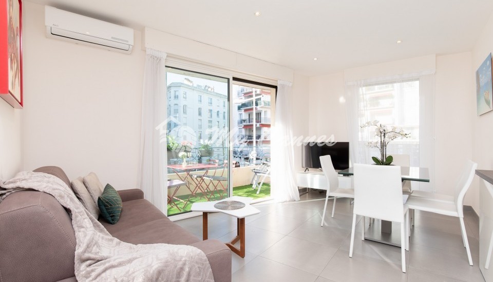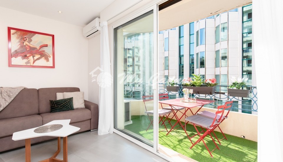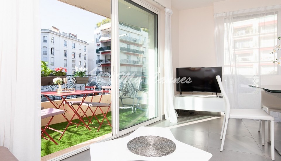 50 meters from Croisette, next to Marriott Hotel, modern 2 bedrooms of 57 sqm fully renovated located on the 2nd floor with elevator and nice terrace with sea view