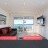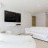 - A living room with sofa couch, chairs, large flat screen TV & air conditioning