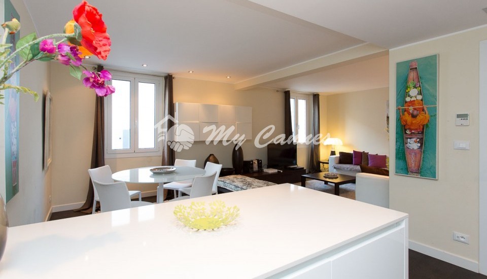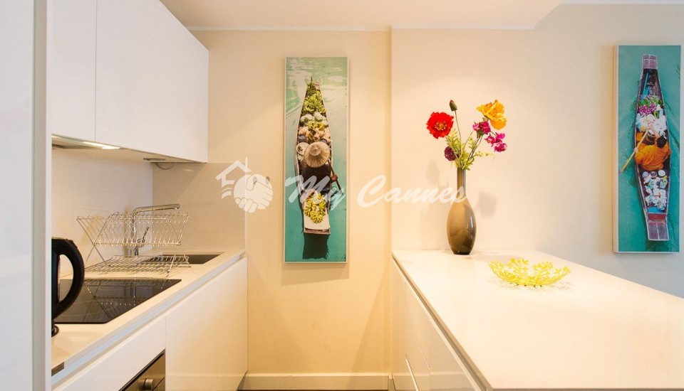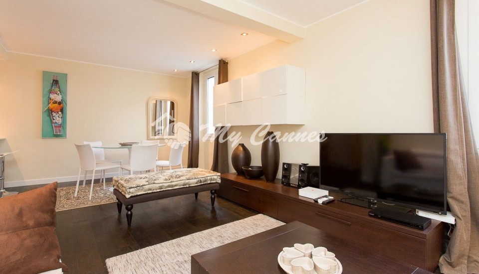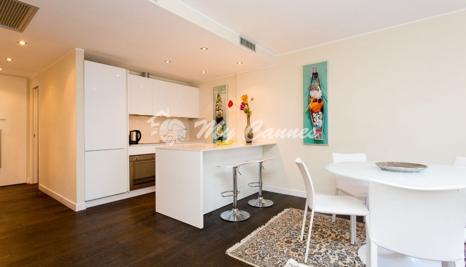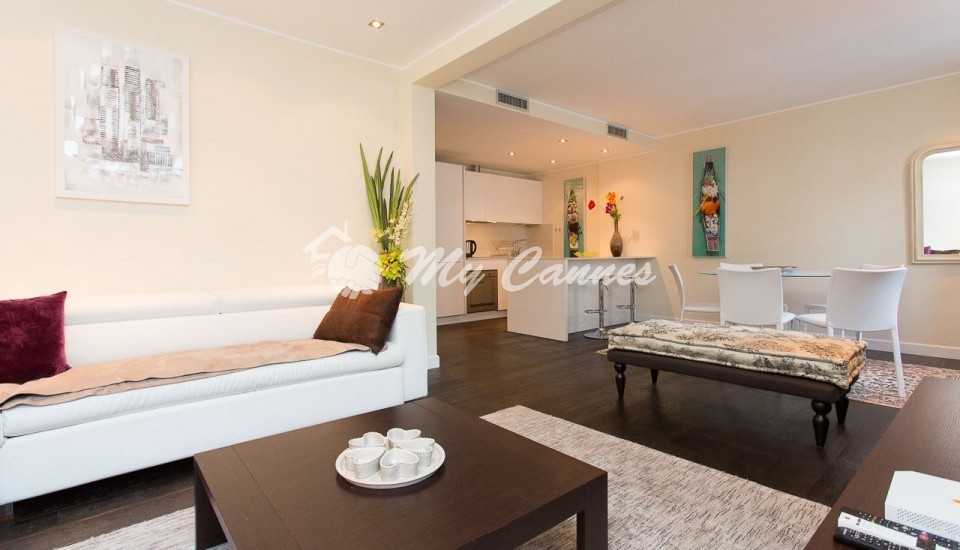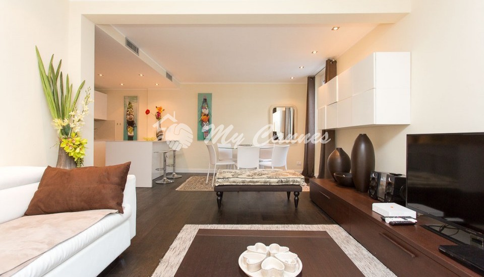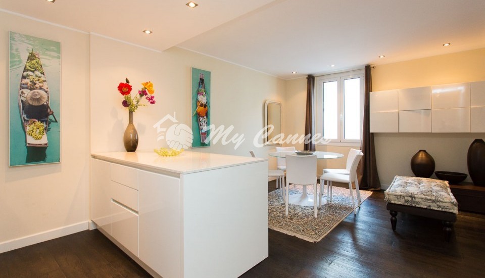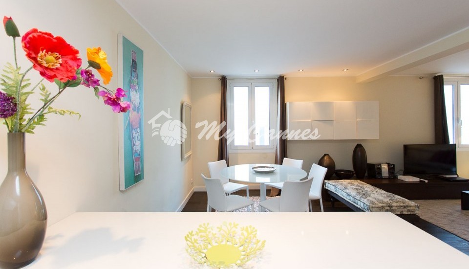 Located in a quiet street and just a few steps from the Palais des Festivals, on the 2nd floor (without elevator), fully renovated 2 bedrooms/ 2 bathrooms apartment of 75sqm with terrace.