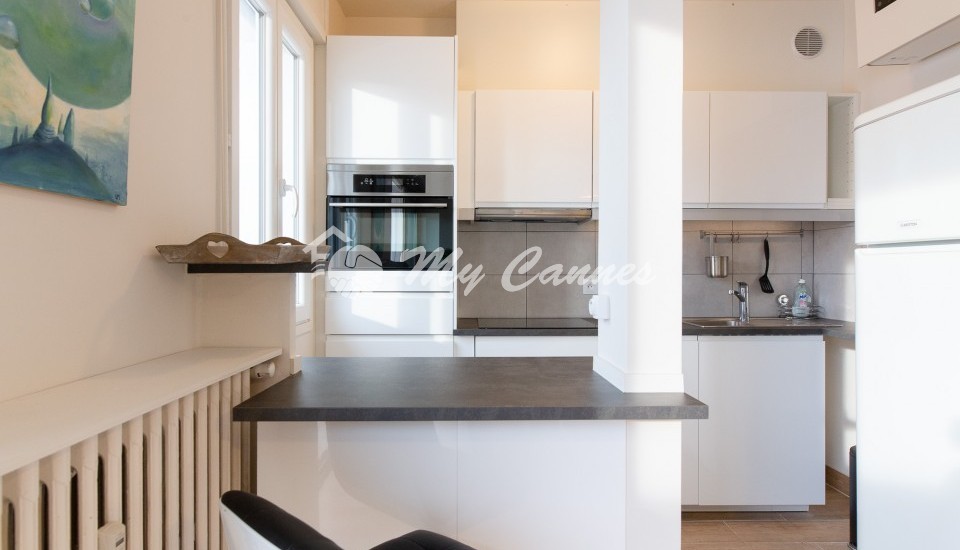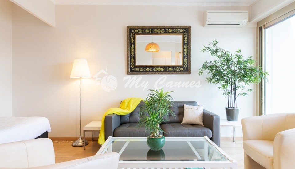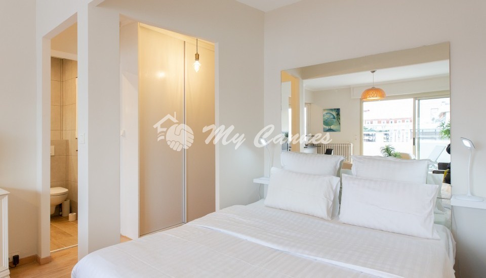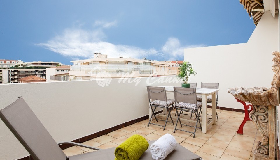 Top floor studio (6th floor with elevator) with large terrace located 100 meters from Croisette, in a safe residence with caretaker.
