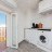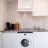 A US fitted kitchen with Coffee machine, kettle, toaster, microwave, refrigerator, electric glass cook top, washing machine