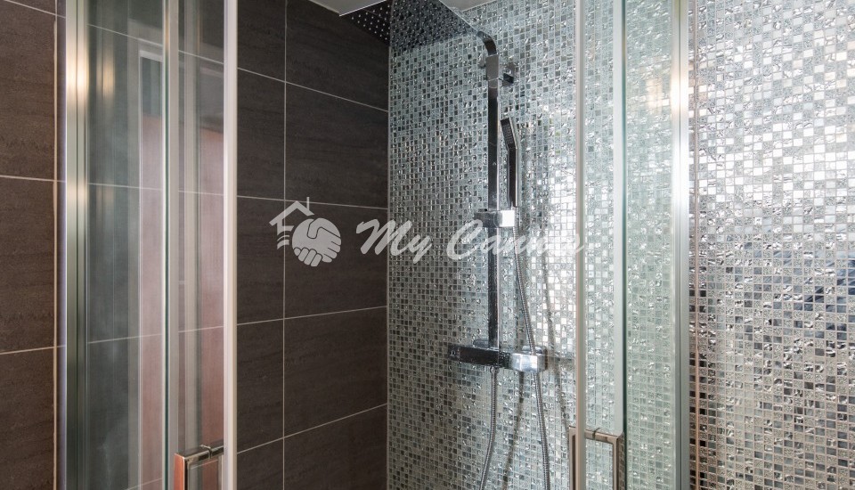 A shower room with toilets, heater to dry the towel and a window to have some fresh air