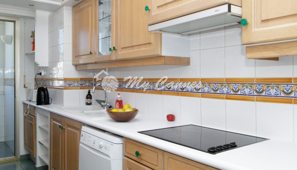 A separate kitchen with microwave, washing machine, refrigerator, freezer…