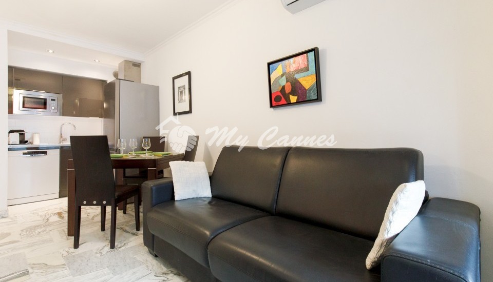 This nice 31sqm 1 bedroom apartment with terrace will enable you to to everything by foot: La Croisette, shopping in Rue d’Antibes,