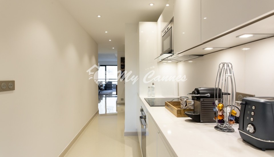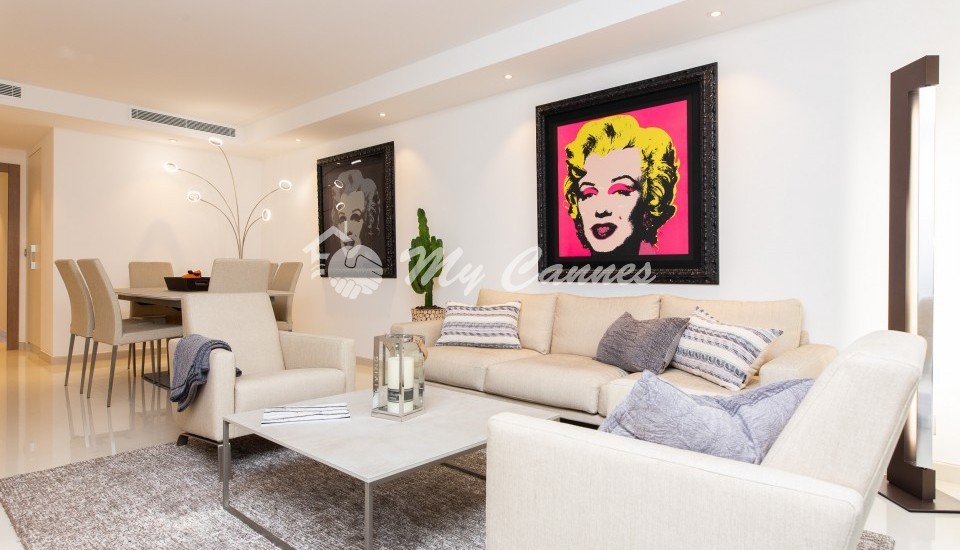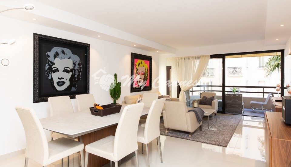 2 bedrooms apartment of 90sqm with a large terrace will enable you to to everything by foot: La Croisette, shopping in Rue d’Antibes,
