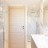 A separated kitchen with Nespresso machine, kettle, toaster, electric glass cooktop, oven