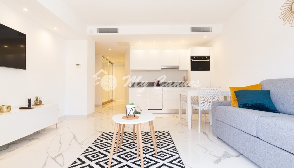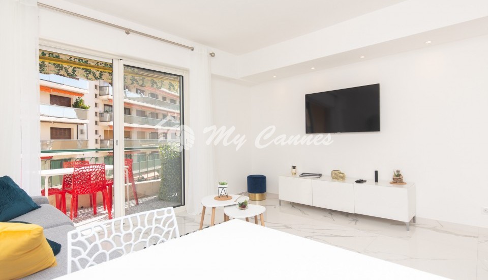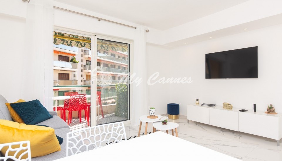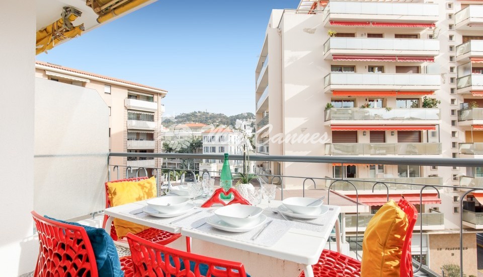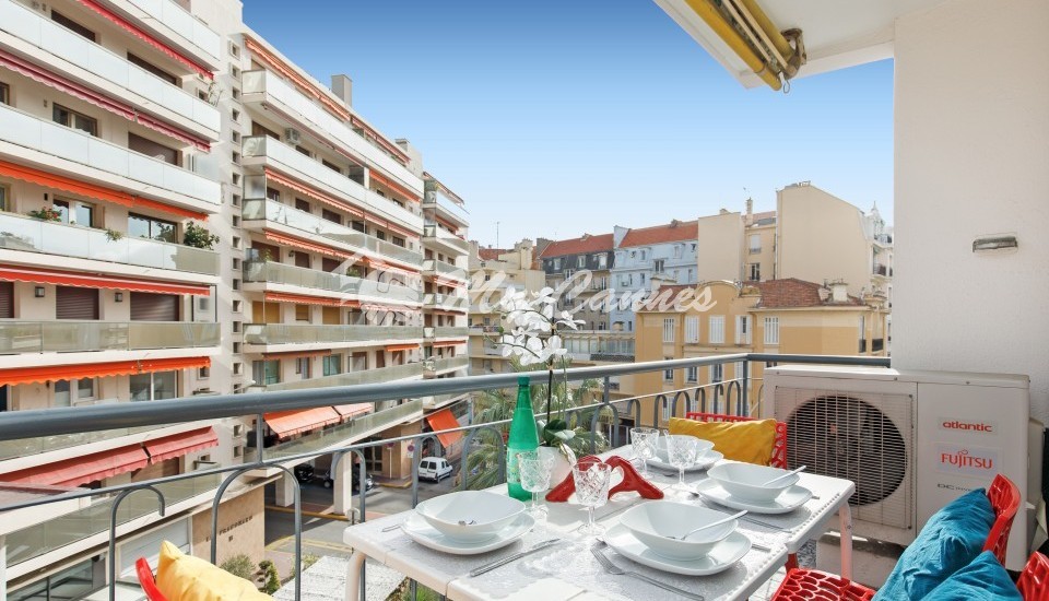 2 bedrooms apartment of 59sqm with a nice terrace will enable you to to everything by foot: La Croisette, shopping in Rue d’Antibes,