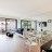 A living room with sofa couch that open onto the terrace with lounge and sun chairs; dining area with table and chairs and TV