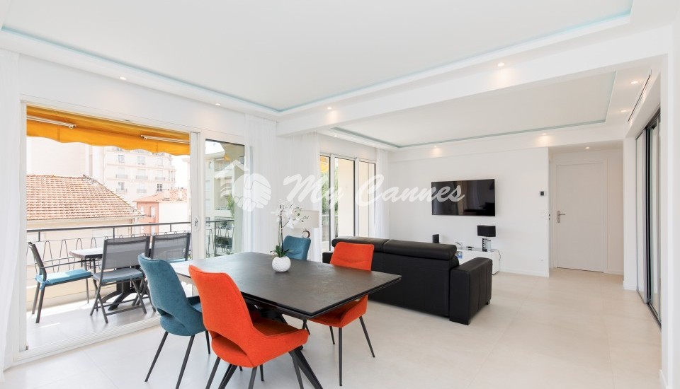 50 meters from Rue d’Antibes and 150 meters from La Croisette, in a safe residence, modern & renovated 3 bedrooms apartment of 92sqm