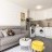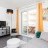 A main room with a sofa bed, armchair, buffe, TV and air conditioning