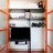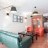 A living room with a couch, TV (hidden in a cupboard), WIFI, dining table