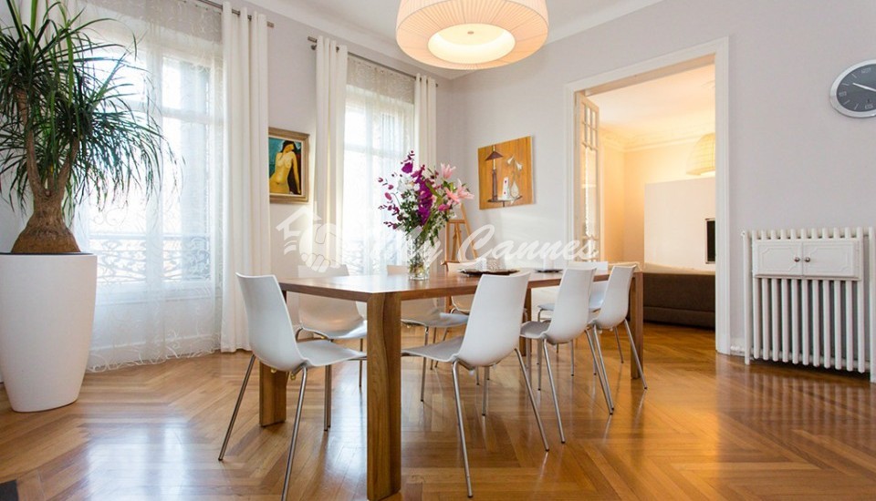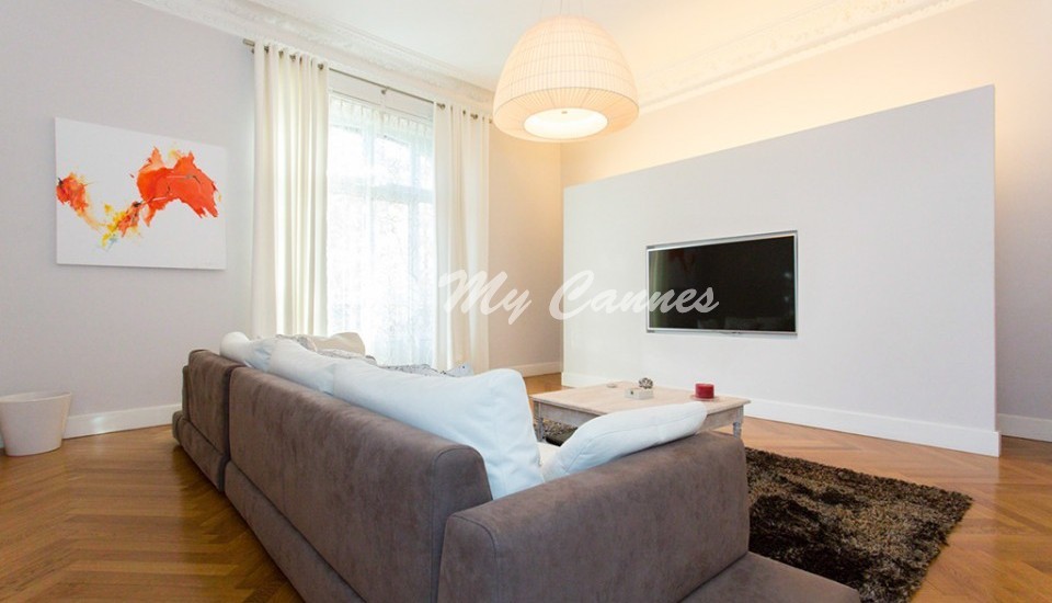 This 3 bedrooms of 155sqm with high ceilings is a luxury and fully renovated apartment that is located only 500 meters from the Palais des Festivals.