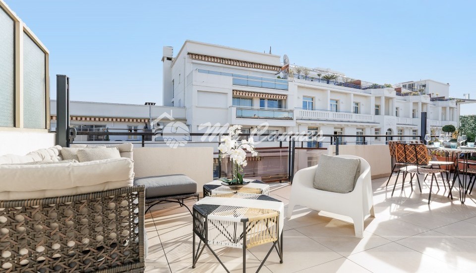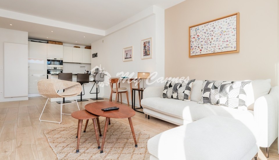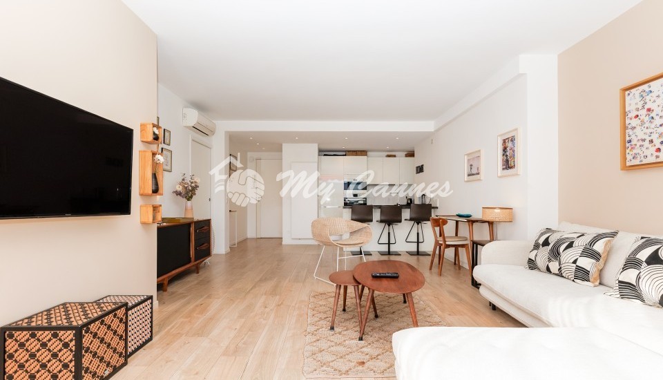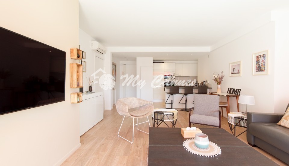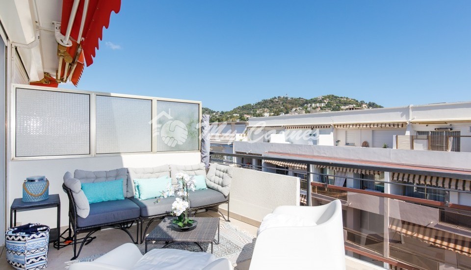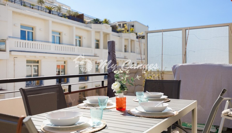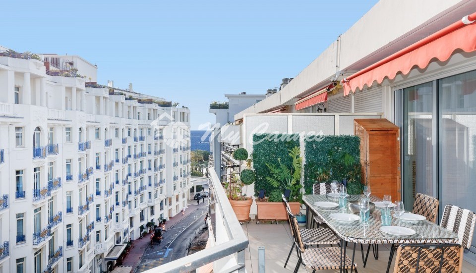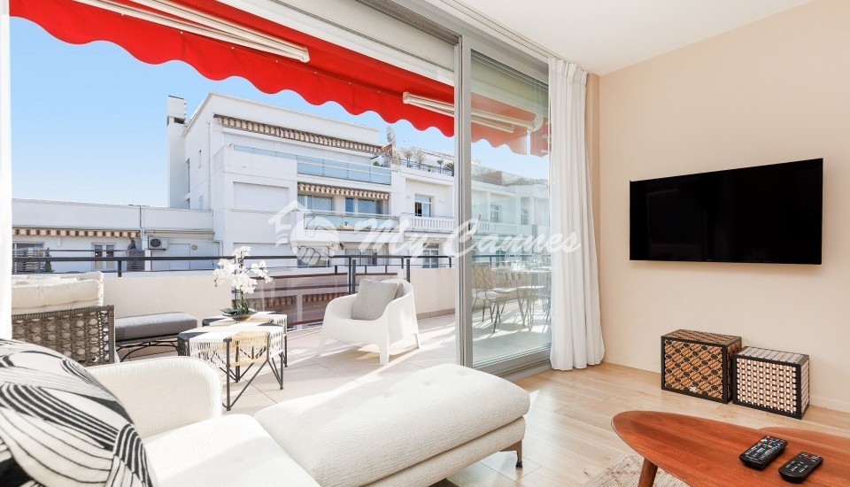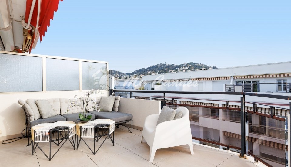 Located 50 meters from the famous Croisette on the 7th floor (with elevator) in a safe residence with caretaker, this 2 bedrooms apartment with XXL living room and XXL terrace will enable you to to everything by foot: La Croisette, shopping in Rue d’Antibes,