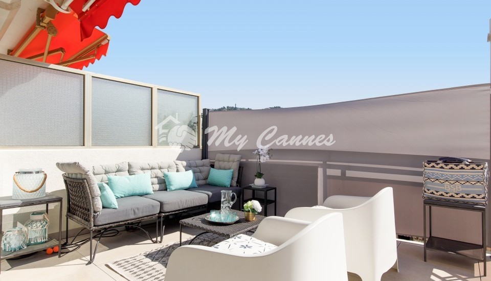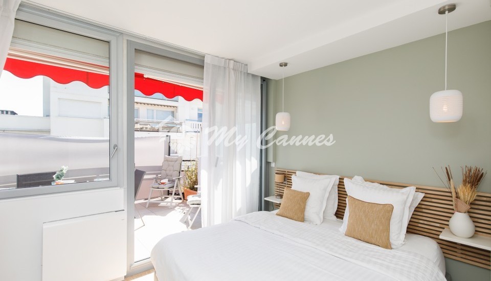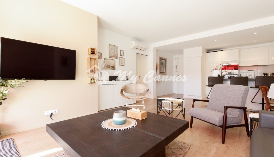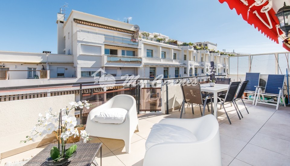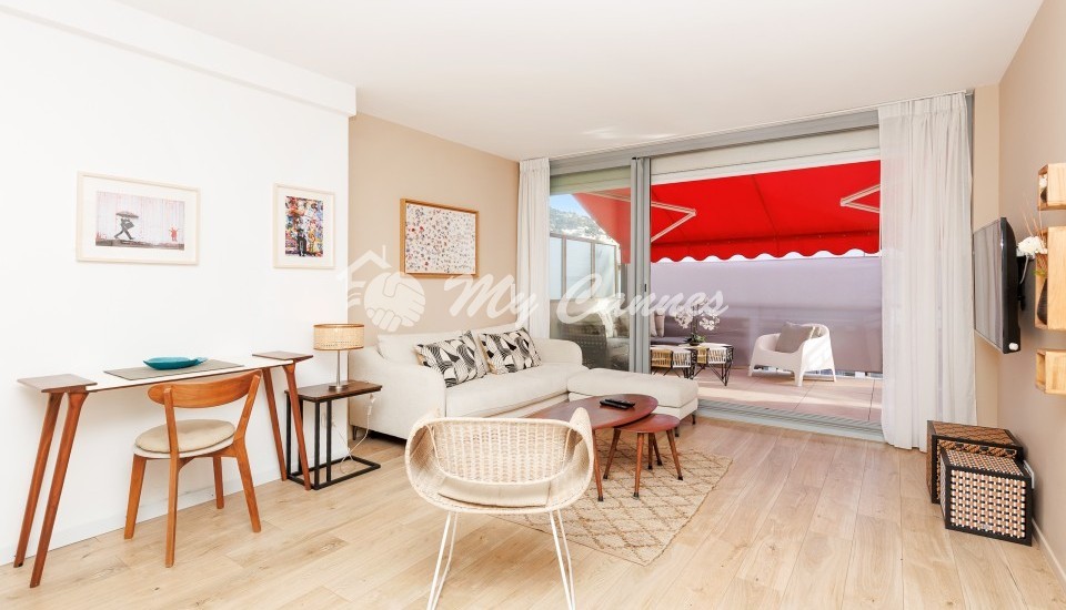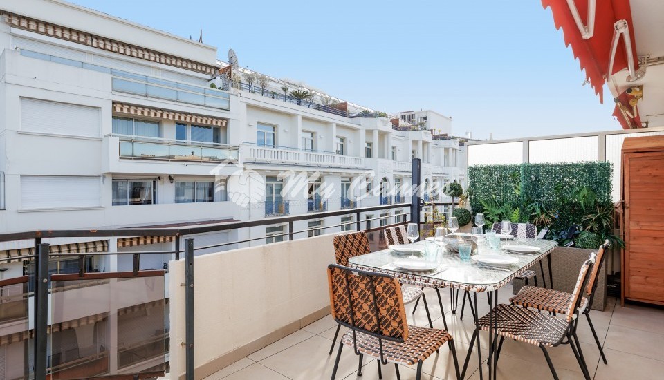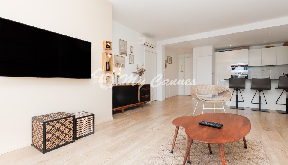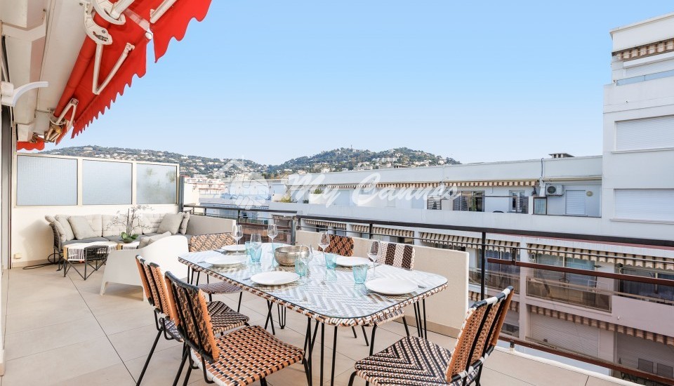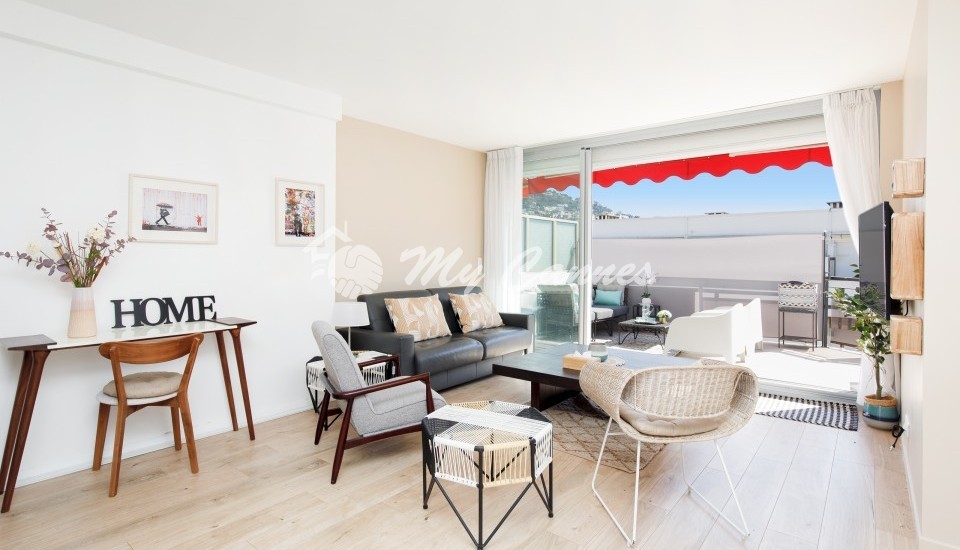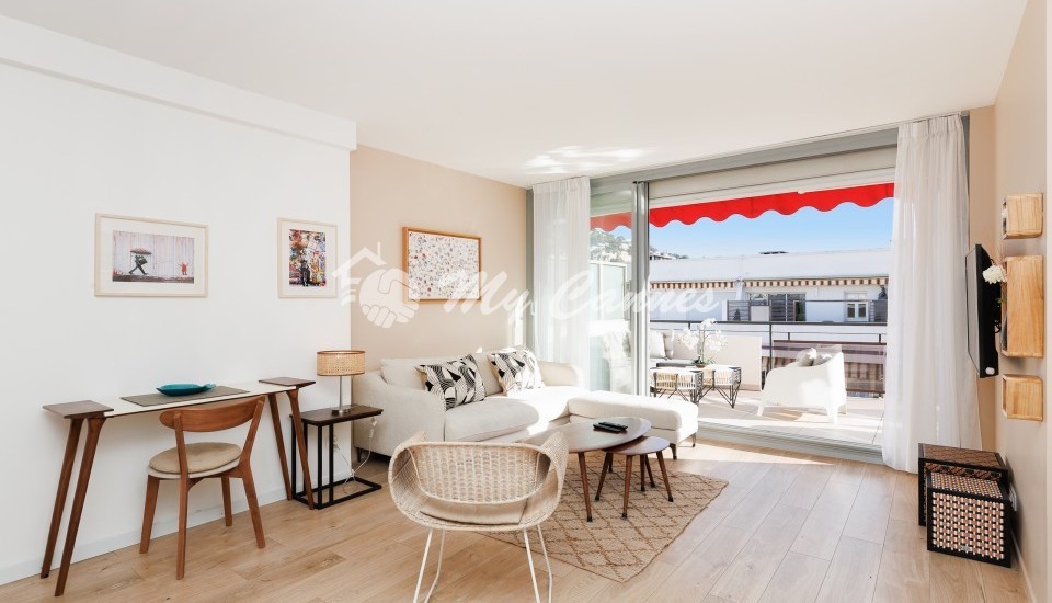 Located 50 meters from the famous Croisette on the 7th floor (with elevator) in a safe residence with caretaker, this 2 bedrooms apartment with XXL living room and XXL terrace will enable you to to everything by foot: La Croisette, shopping in Rue d’Antibes,