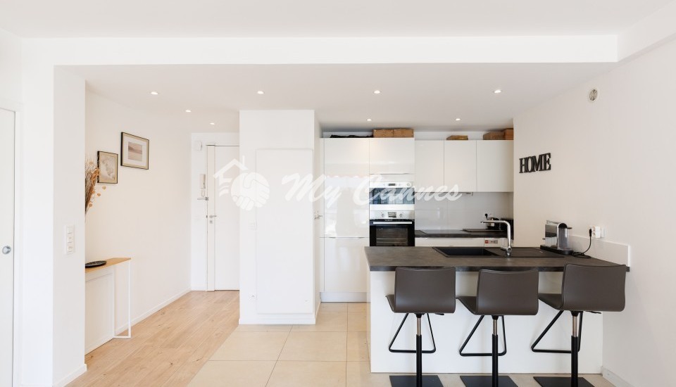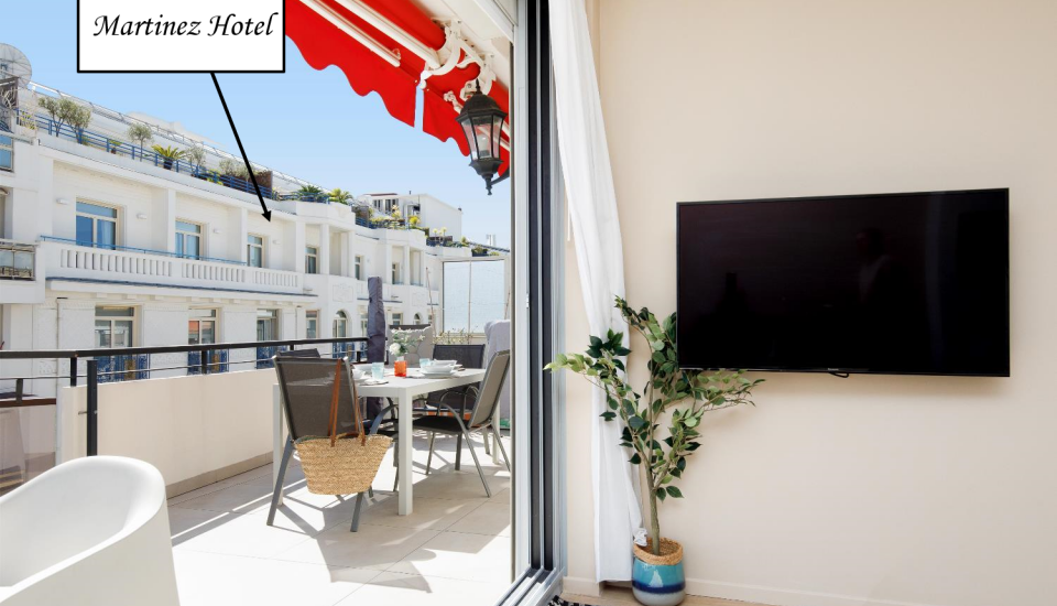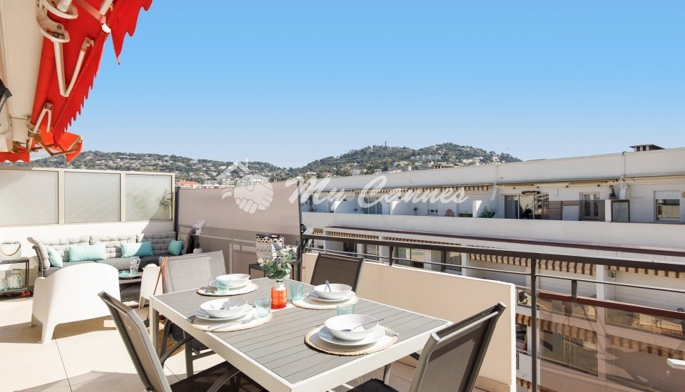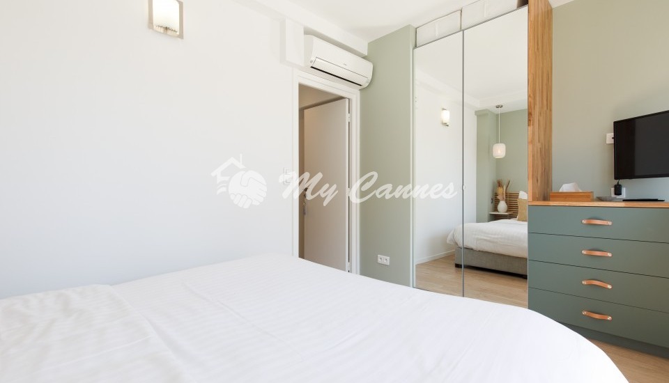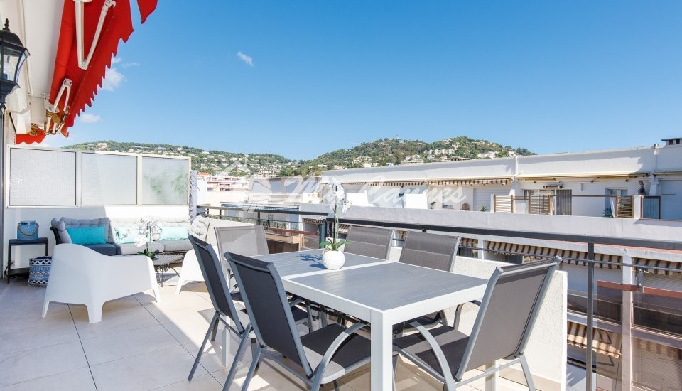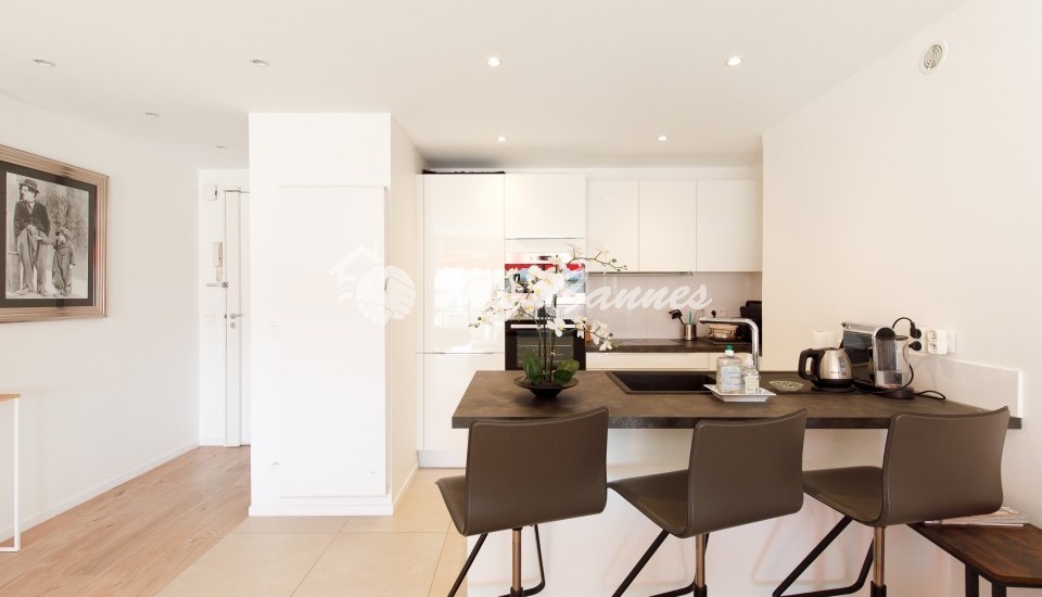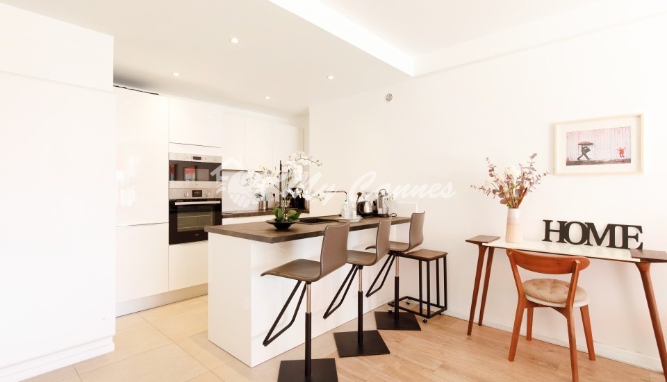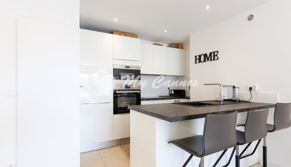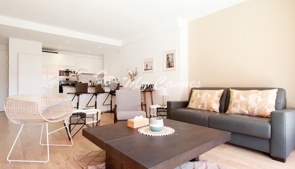 Located 50 meters from the famous Croisette on the 7th floor (with elevator) in a safe residence with caretaker, this 2 bedrooms apartment with XXL living room and XXL terrace will enable you to to everything by foot: La Croisette, shopping in Rue d’Antibes,