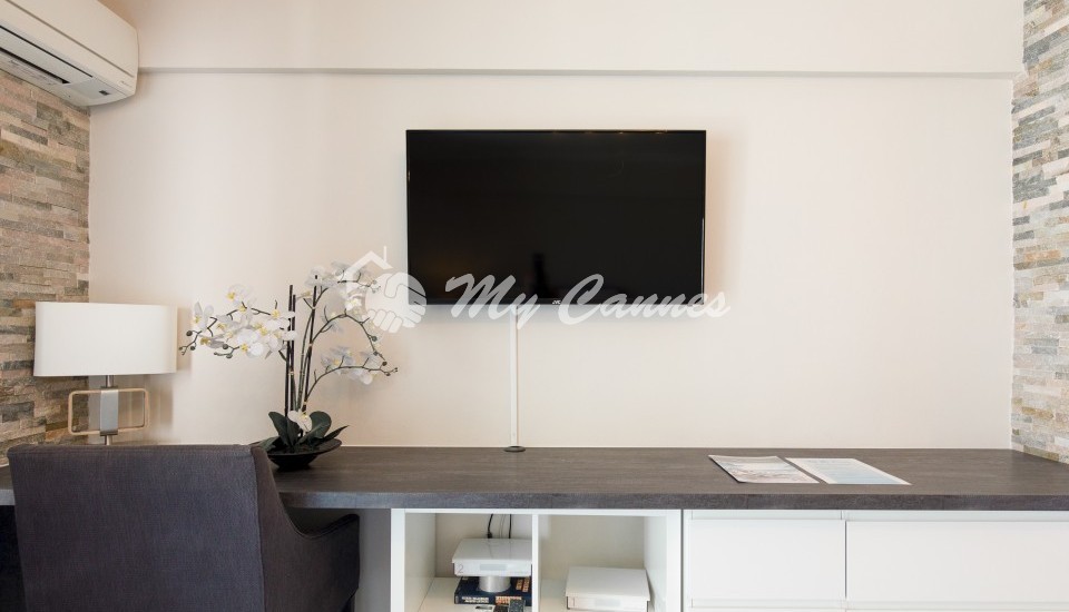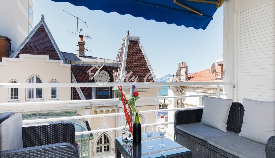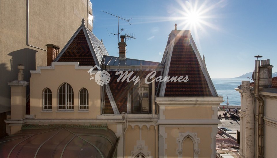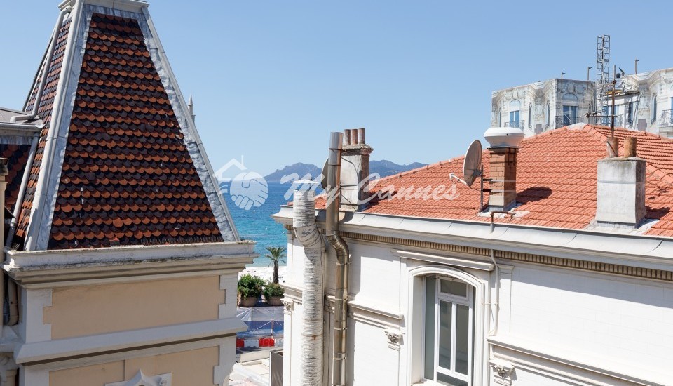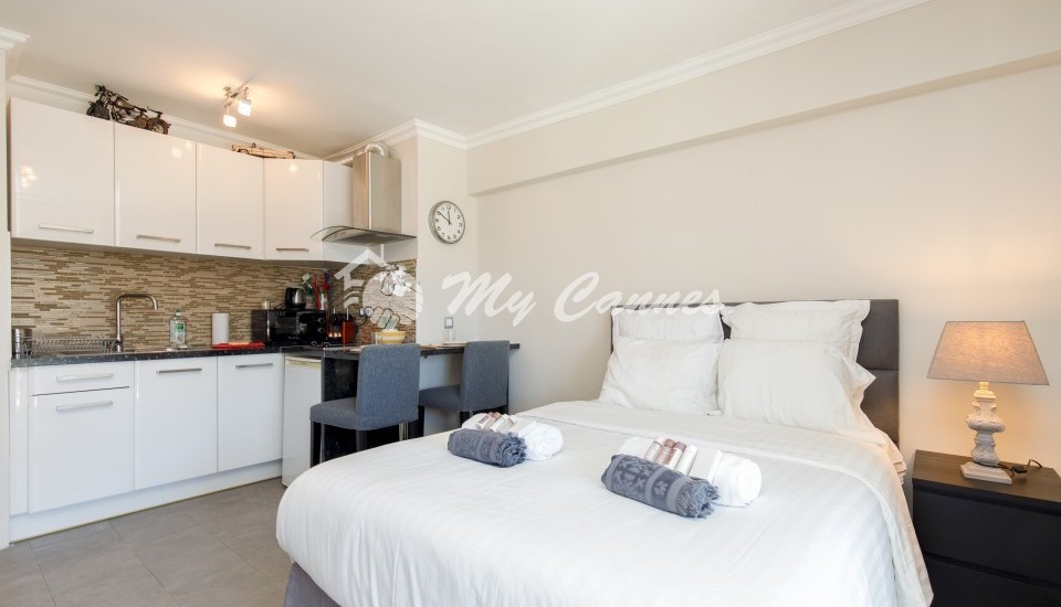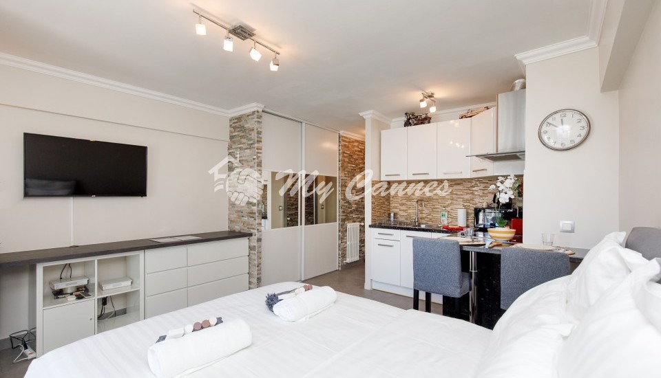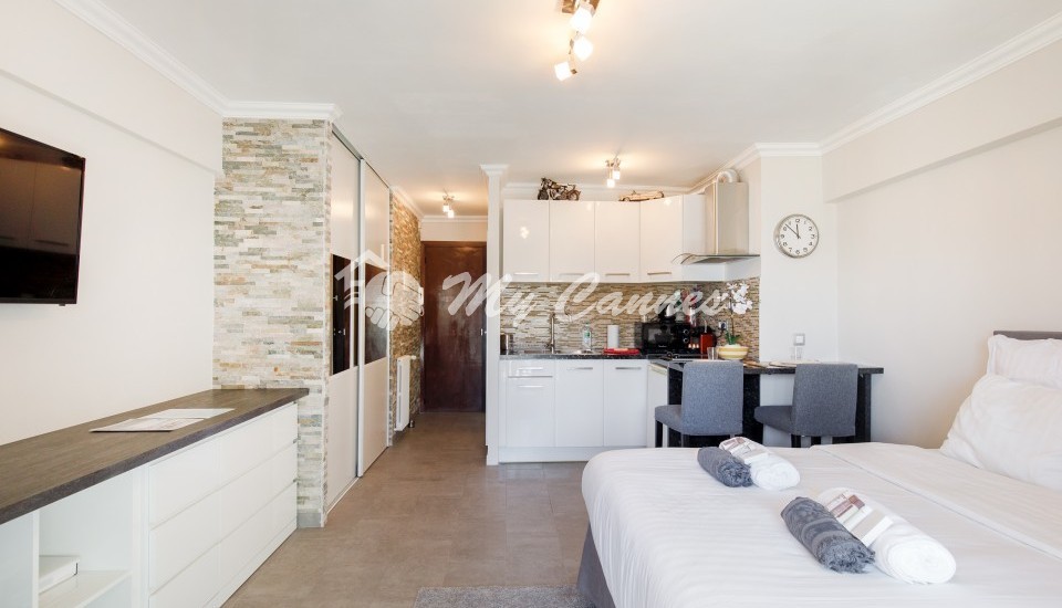 Located on La Croisette, high floor apartment (4th floor with elevator) of 30sqm + 8sqm terrace with little sea view.