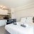 - A kitchen corner with microwave, refrifgerator, ceramic flass cook top, Nespresso coffee machine & kettle