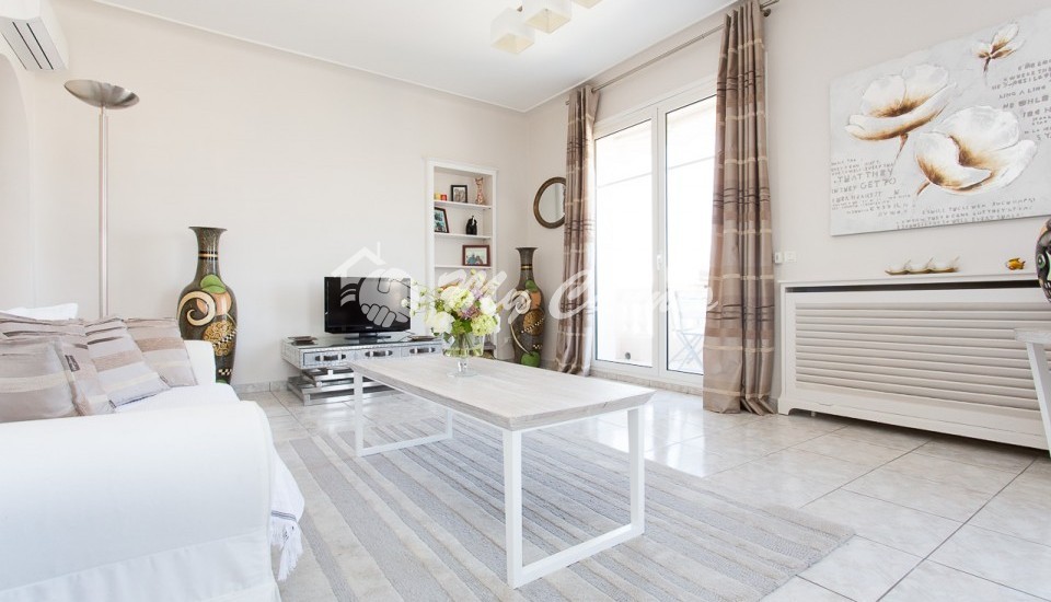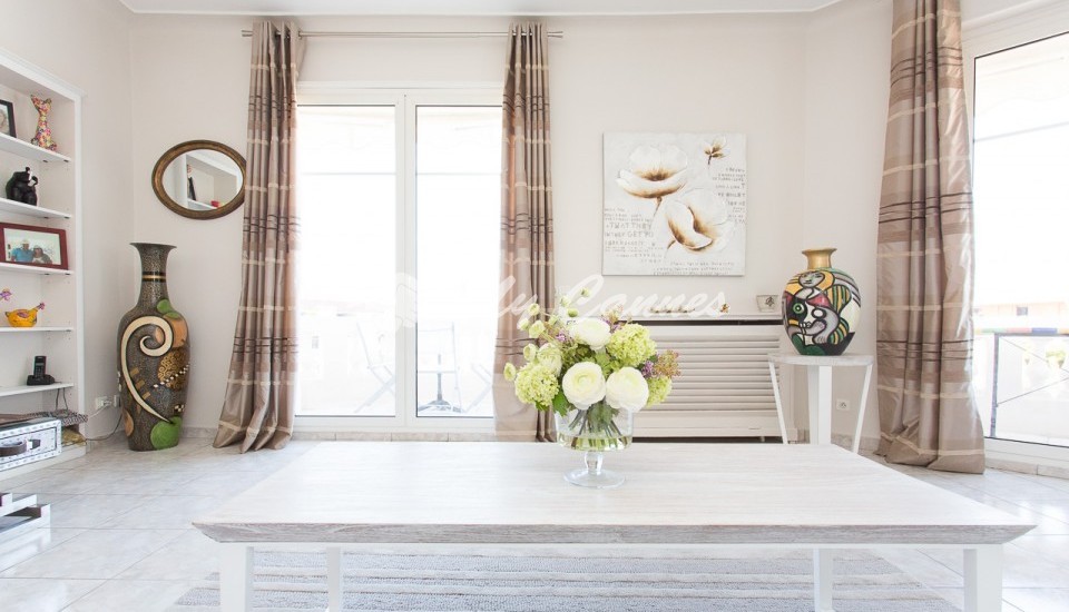 - A living room with couch, flat screen TV, armchair, internet WIFI. The living room opens onto 2 balconies: one with sea view and another one with mountains view.