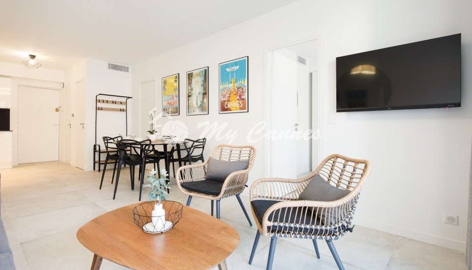 Located 100 meters from La Croisette on the 5th floor of a nice & safe residence with caretaker, this 2 bedrooms/ 2 baths apartment with a terrace will enable you to to everything by foot: La Croisette, shopping in Rue d’Antibes,