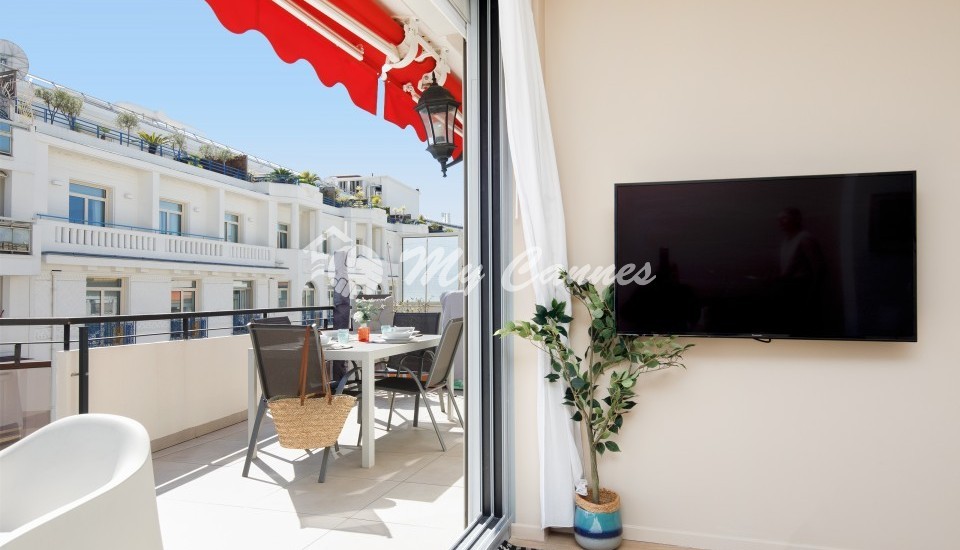 Located 50 meters from the famous Croisette on the 7th floor (with elevator) in a safe residence with caretaker, this renovated 1 bedroom apartment with XXL terrace will enable you to to everything by foot: La Croisette, shopping in Rue d’Antibes, restaurants, Palais des Festivals, beaches, night clubs…